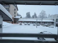 arriva il camion dei pompieri e si posiziona nel parcheggio di fronte all'uscita del nostro alloggio.